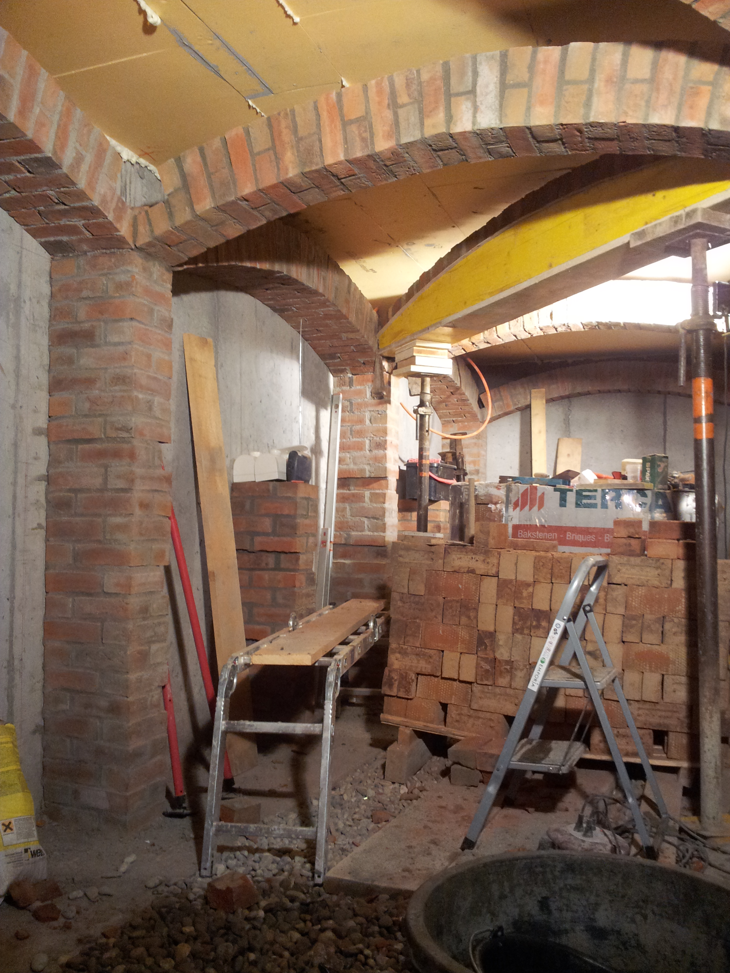 Also... der Keller wurde vor ca. 2.5 Jahren fertig. Ich habe die Gewölbe in eine Betonkiste eingebaut. Der Kamin ist tatsächlich nur Deko