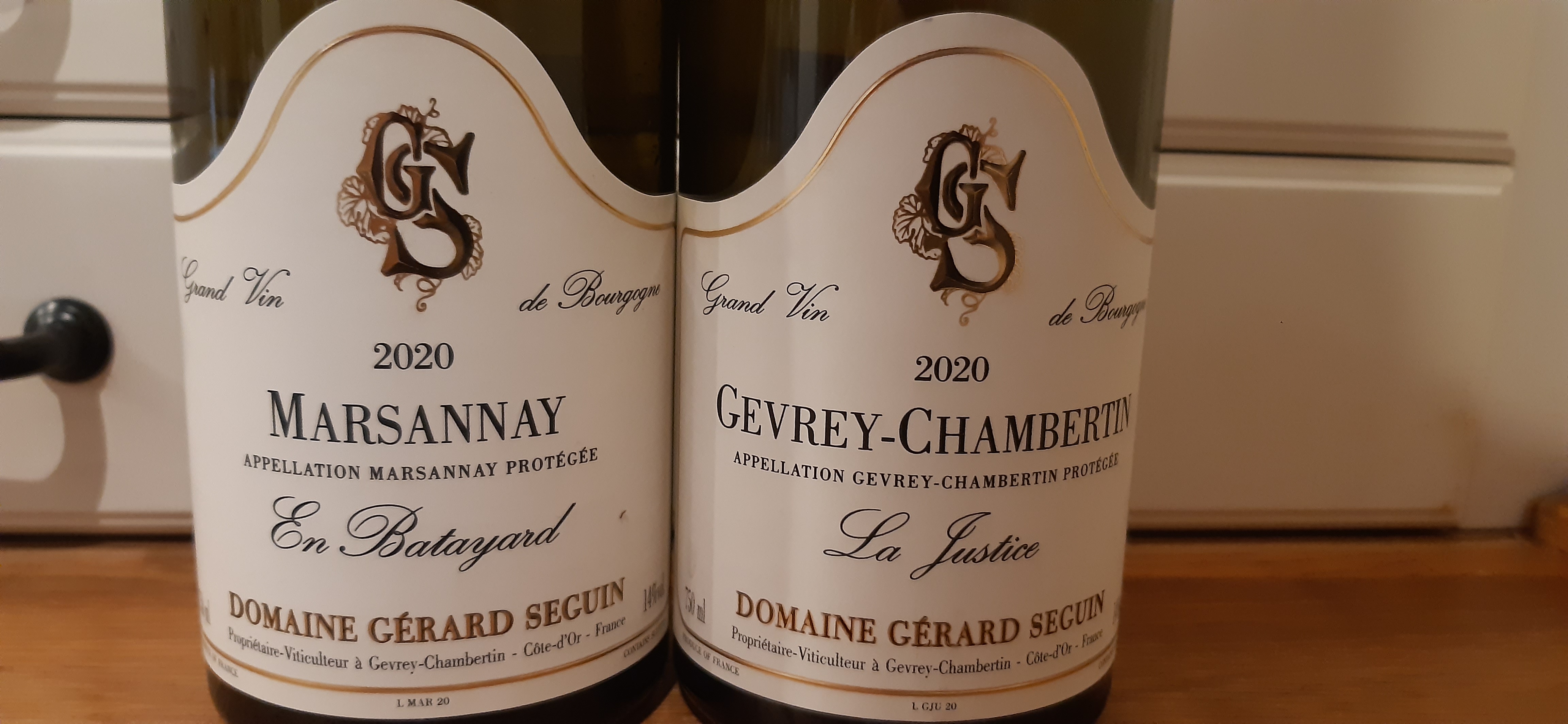 Angetrieben von Markus` Notiz zum "Marsannay en Batayard" von G. Seguin habe ich die eine Flasche vom 2020er, die ich mal als Beifang mitgeordert habe, getrunken und danach den Gevrey-Chambertin "La Justice" aus gleichem Hause und Jahrgang.