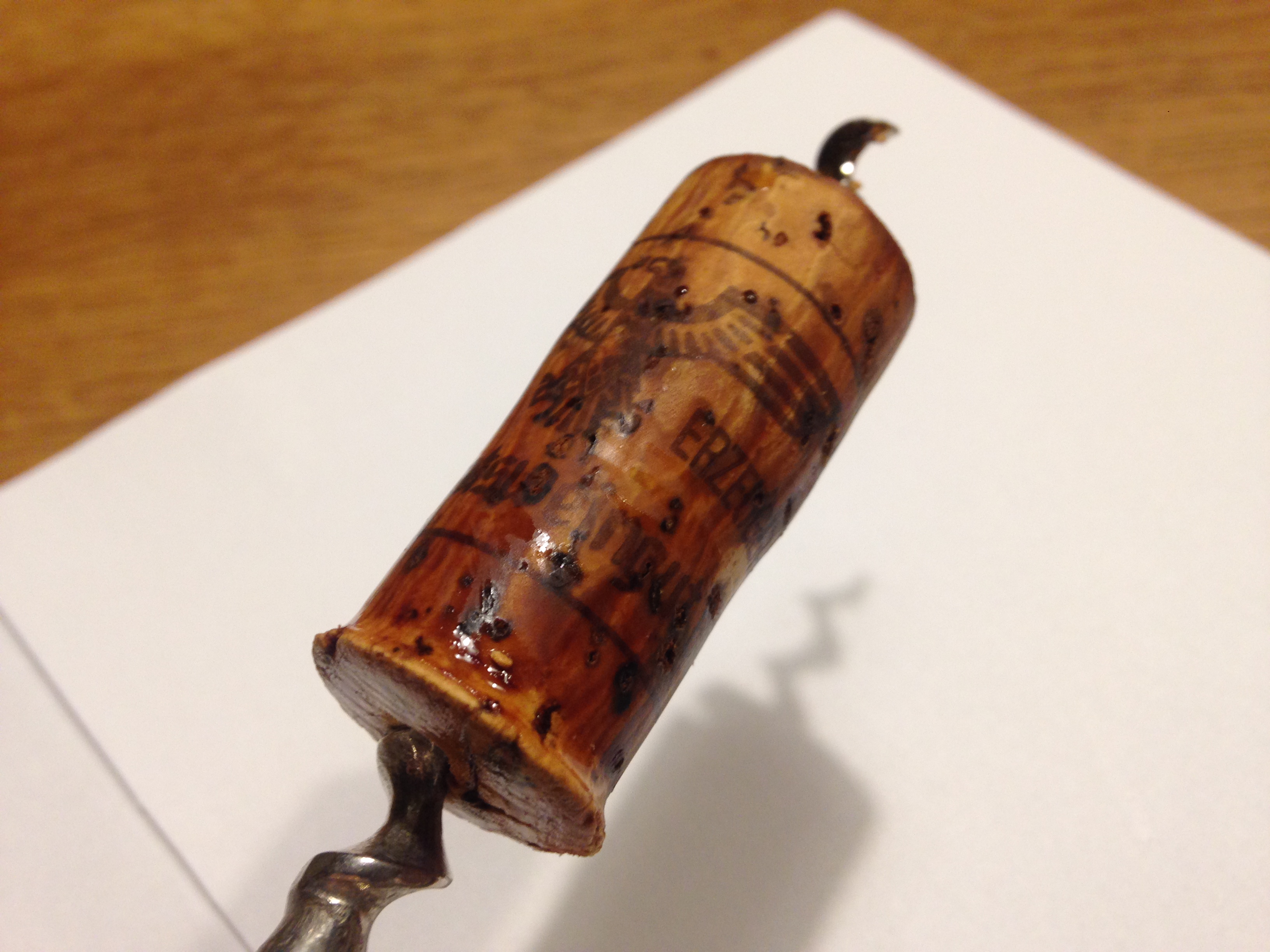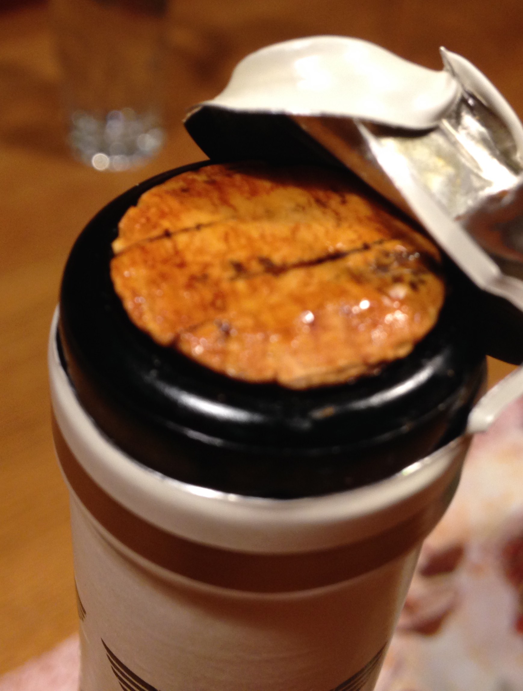 ich habe einen 1996er Heppenheimer Centgericht Spätburgunder Weißherbst Eiswein degustieren wollen und den Korken wie auf den Bildern vorgefunden. Auf persönliche Nachfrage bei der Domäne Hessische Bergstraße wurde mir erklärt, dass der hohe Zuckergehalt den Korken leicht benetzen kann (der Korken war sehr schmierig). Der Wein hatte keinerlei Anzeichen eines Korkstichs. Der Wein war unter meiner Lagerung ca. 1 Jahr im Weintemperierschrank.