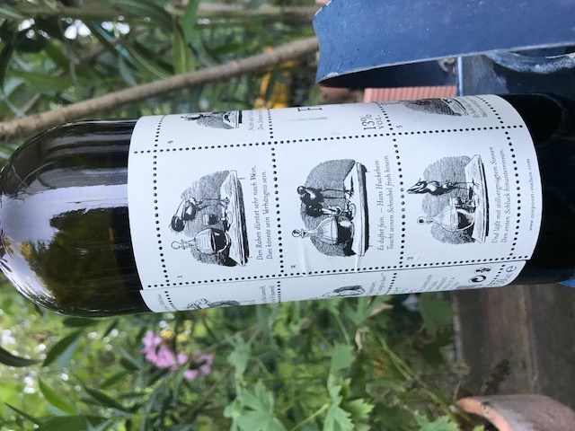 Ein durchschnittlicher Wein, mit einem sehr witzigem Etikett von Hans Huckebeins tragischer Lebensgeschichte