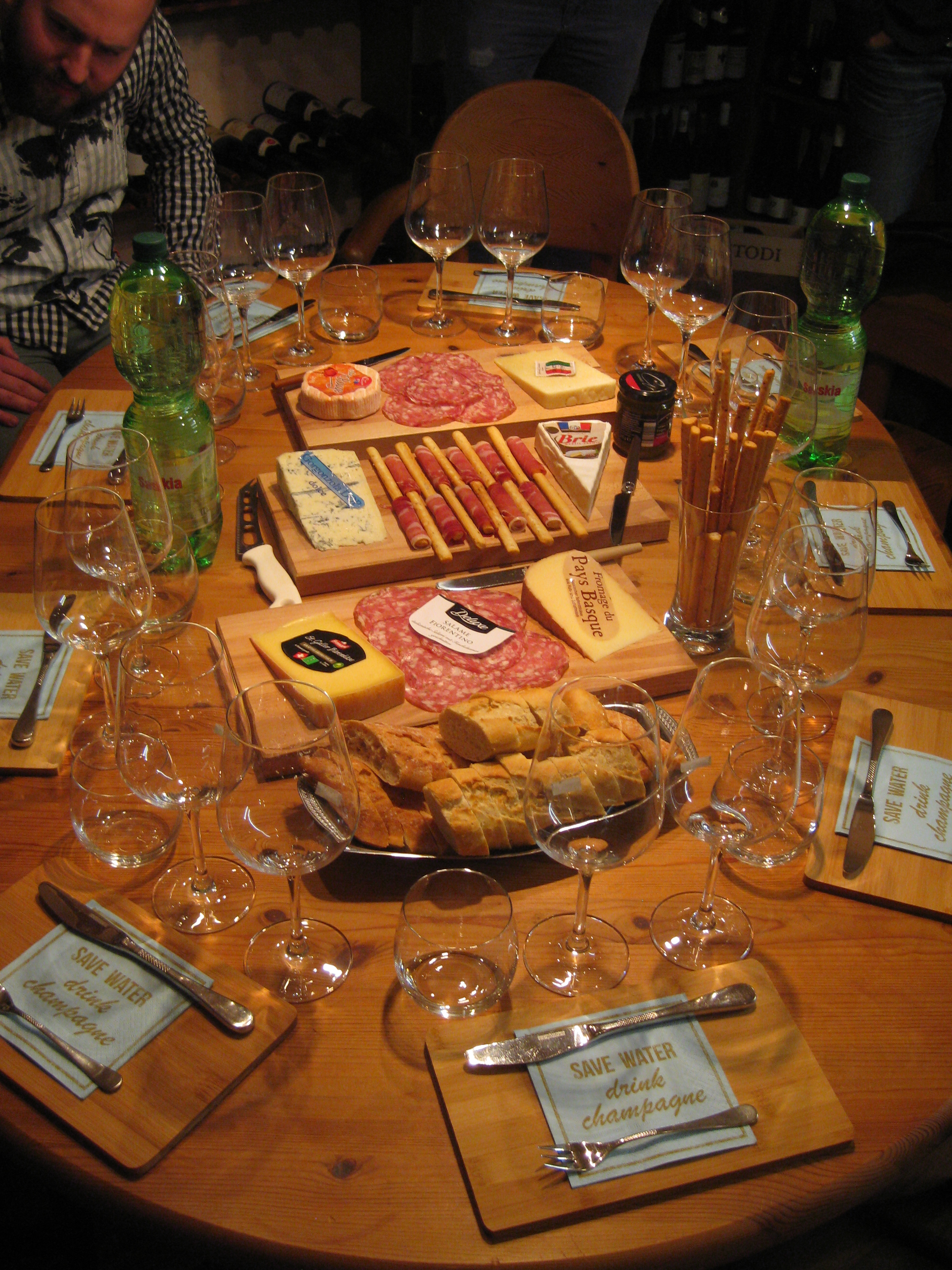 Preis 28,- inkl. div.6 Käsesorten, Wein, Wasser, Baguette,Spanischer Salami, Serrano-Schinken, Grissini, Feigensenf