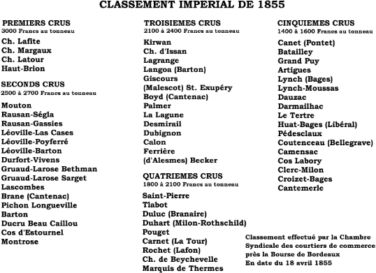 nicht selten passiert es, dass ein Chateau sich durch Erbteilung "vermehrt". Die alte Klassifikation von 1855 kannte zB weder ein Chateau Leoville Las Cases noch ein Chateau Leoville Barton oder gar Poyferré, wohl aber ein Chateau Leoville. Gelegentlich passiert es jedoch auch, dass ein Chateau verschwindet. Auf dem linken Ufer geschieht das innerhalb der Klassifikation kaum. Ein Eigentümer, der einen Platz im Adelsregister der 1855 Klassifikation besitzt, verzichtet nicht auf den Ruhm. Kleinere Chateaus innerhalb der Appellationen stehen da schon mehr in der Gefahr. Oder erinnert sich noch jemand an Chateau La Tour Haut Brion?