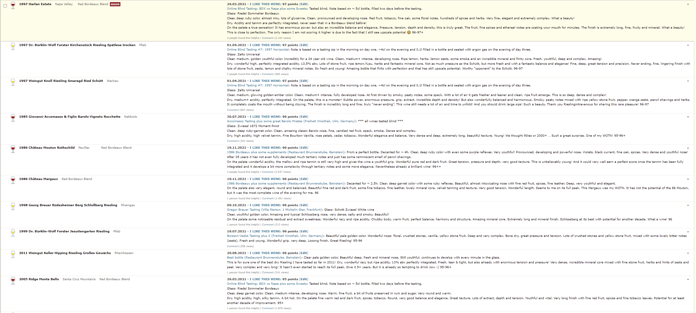 Laut CellarTracker sind das meine Top 10 aus 2021: