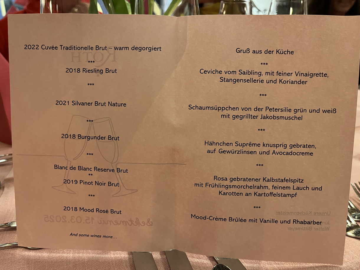 Viel Spaß dabei! Die Roth'schen Schäumer sind ja absolut nix Schlechtes! Würde mich interessieren, ob das -unabhängig von der Qualität der Weine- wirklich problemlos funktioniert, ein ganzes Menü durchgängig mit Schaum zu begleiten, hab ich noch nie gemacht...
