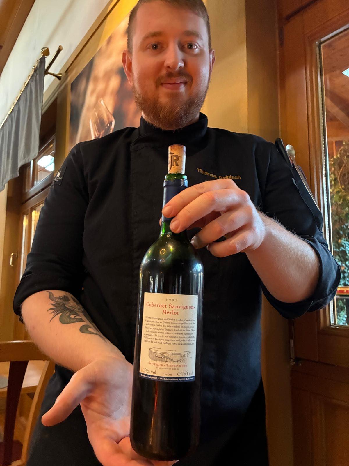 Nach einem herrlicen Rotgipfler ist der Juniorchef dann in den Keller und hat den letzten Cabernet-Sauvignon/Merlot von 1997 aus der privaten Sammlung fürs 4 Gang-Menü zur Verfügung gestellt!