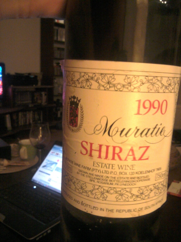 Es handelt sich um einen 1990er Shiraz vom Weingut Muratie aus Stellenbosch.