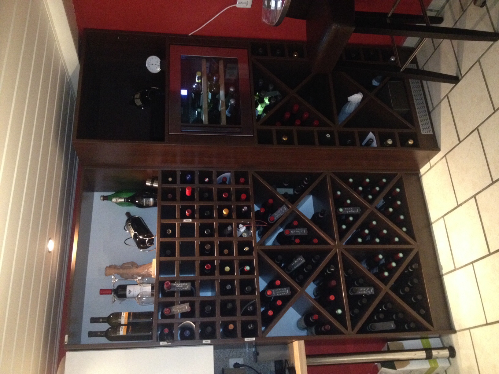 Einen Teil habe ich schon fertig. Dort steht jetzt das Weißweinregal. Nichtsdestotrotz, es wird noch viel Wein die durstigen Kehlen hinab fließen, bis ich fertig bin (und dann fange uch von vorne an