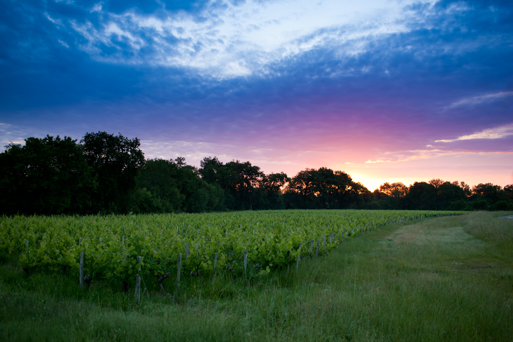 War der April kalt und trocken wurde der Mai kalt und nass. Hier in Bégadan hatten wir 130 mm Niederschläge und abends wärmte regelmäßig das Kaminfeuer. Krankheitsdruck kam nicht auf. Die kühle Witterung verlangsamte die Entwicklung der Sporen des Falschen Mehltaus' (Mildiou) – nochmal gut gegangen. Der Wuchs der Triebe ist sehr heterogen. Jeder Meter Abstand zur Gironde zählt. Der Einfluss der kühlen Witterung zeigt hier erstaunliche Unterschiede. Die ersten Blüten fand ich im Wein am 25. Mai – natürlich nah an der Gironde. Mittlerweile geht die Blüte überall gut voran. Das nun warme Wetter sollte perfekt sein für einen guten Blüteverlauf. Es könnte allerdings auch zu dem Phänomen kommen, dass die Parzellen, die sich bisher nicht gut vegetativ entwickeln können dies nun nachholen. Der Schub ins vegetative Wachstum kann die Blüte durchaus schwächen. Also abwarten… Jetzt kommt erst mal der Sommer.