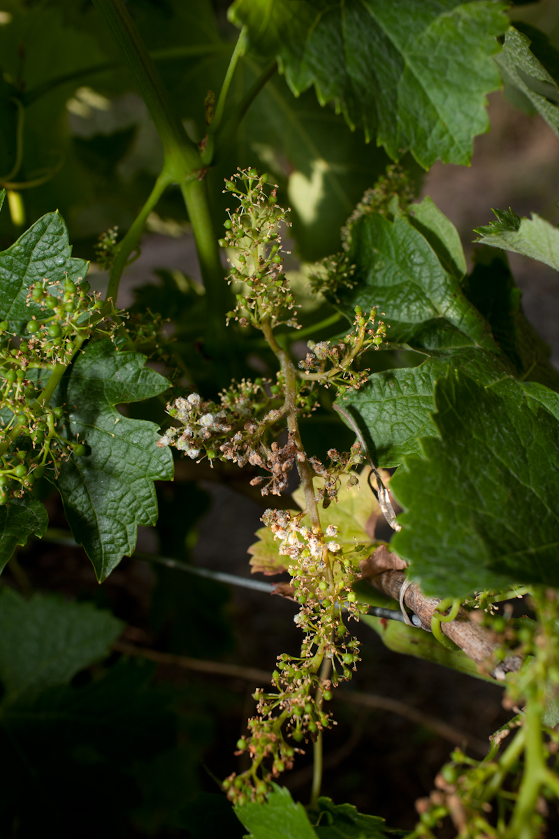 Mildiou/Falscher Mehltau auf der Blüte in unserer Kontroll-Parzelle – ohne Pflanzenschutz.