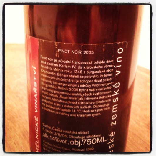 Pinot noir 2005, Vinařství Kraus Mělník, české zemské víno (Böhmischer Landwein)