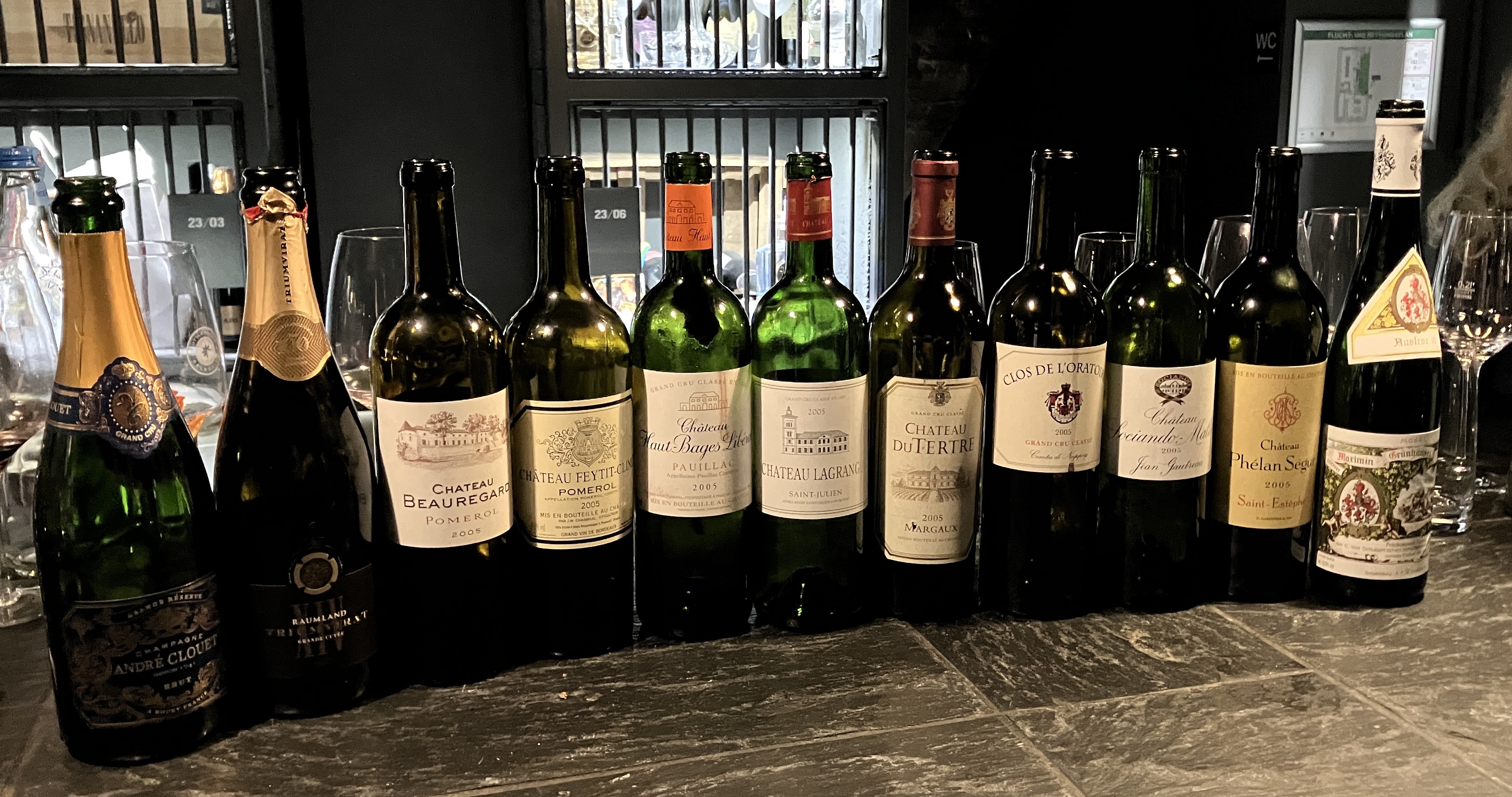 Gestern Abend trafen wir uns in der Frankfurter WineBank zu einer Bx 2005er-BYOB-Mittelklassenprobe. Die Weine wurden mit einer Ausnahme blind verkostet. Habe mir keine Notizen gemacht, aber aus der Erinnerung heraus würde ich die Weine (fwiw) wie folgt „raten“: