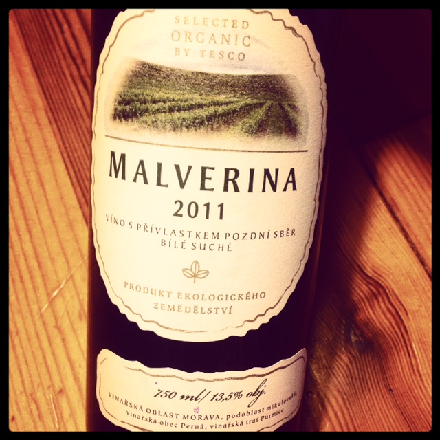 Malverina, eine tschechische Piwi-Sorte, laut Wiki eine Kreuzung aus "Rakiš" (Villard blanc x Frühroter Veltliner) und "Merlan" (Merlot x Seibel 13666). Also Bio. Recht markante Nase mit deutlich floralen und würzigen Tönen, erinnert stellenweise an Traminer, aber ein wenig auch an Riesling. Am Gaumen wieder sehr kräuterig und würzig (jetzt eher Veltliner-Assoziation), relativ kräftiger Körper (13,5 vol.), gelbe reife Frucht Richtung Honigmelone und Birne, gewisse Erdigkeit, feine Säure, hat was Exotisches, insgesamt stimmig und recht interessant.
