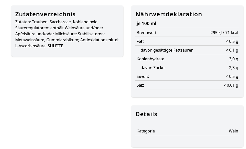 Ich habe mal versucht, ein bisschen zusammenzutragen, was nun wie genau an Nährwerten und Zutaten auf die Flaschen kommt. Von der ganzen Klaviatur der kellertechnischen Möglichkeiten wird der Verbraucher im Zutatenverzeichnis jedenfalls nicht allzuviel wieder finden.