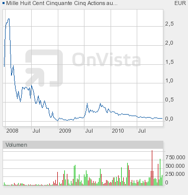 Der Aktienchart von 1855.com; aktueller Kurs 8 Cent die Aktie