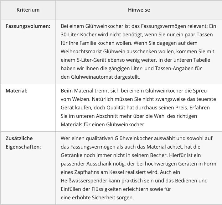 Falls du dir aber unbedingt einen Glühweinkocher kaufen möchtest, dann würde ich dir raten, folgende Kriterien zu beachten: