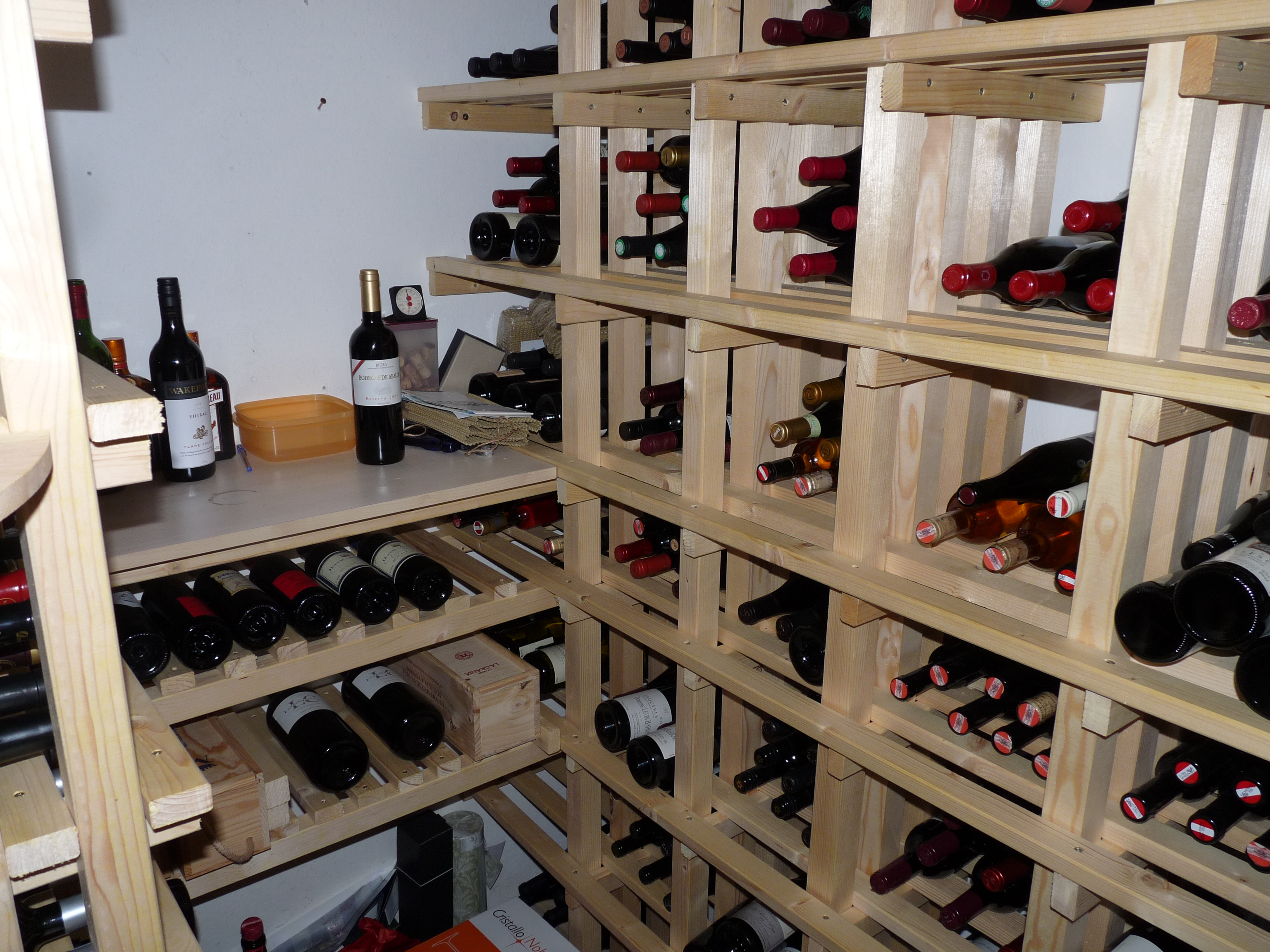 Ein Regalsystem selber bauen wäre durchaus eine Option, ist aber natürlich schon viel Action für die Anzahl an Flaschen. Wie sieht es denn mit dem Holz im feuchten Keller aus? Wird das nicht trotzdem auch irgendwann zu schimmeln beginnen?