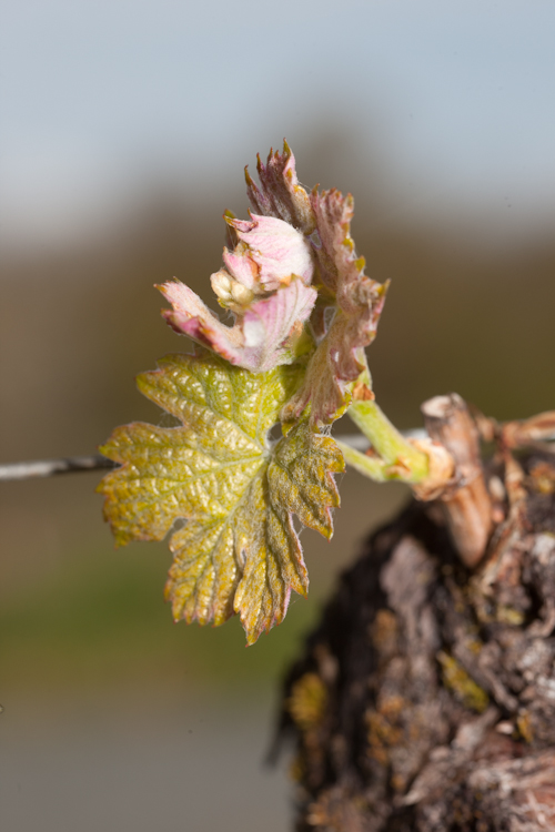 Auch der Wein treibt weiter aus, wenn auch sehr langsam. Einige Cabernets fangen jetzt erst an die Knospen zu öffnen. Bei dieser Merlot ist der Blühansatz schon zu erkennen. Frost darf es nun keinen mehr geben.