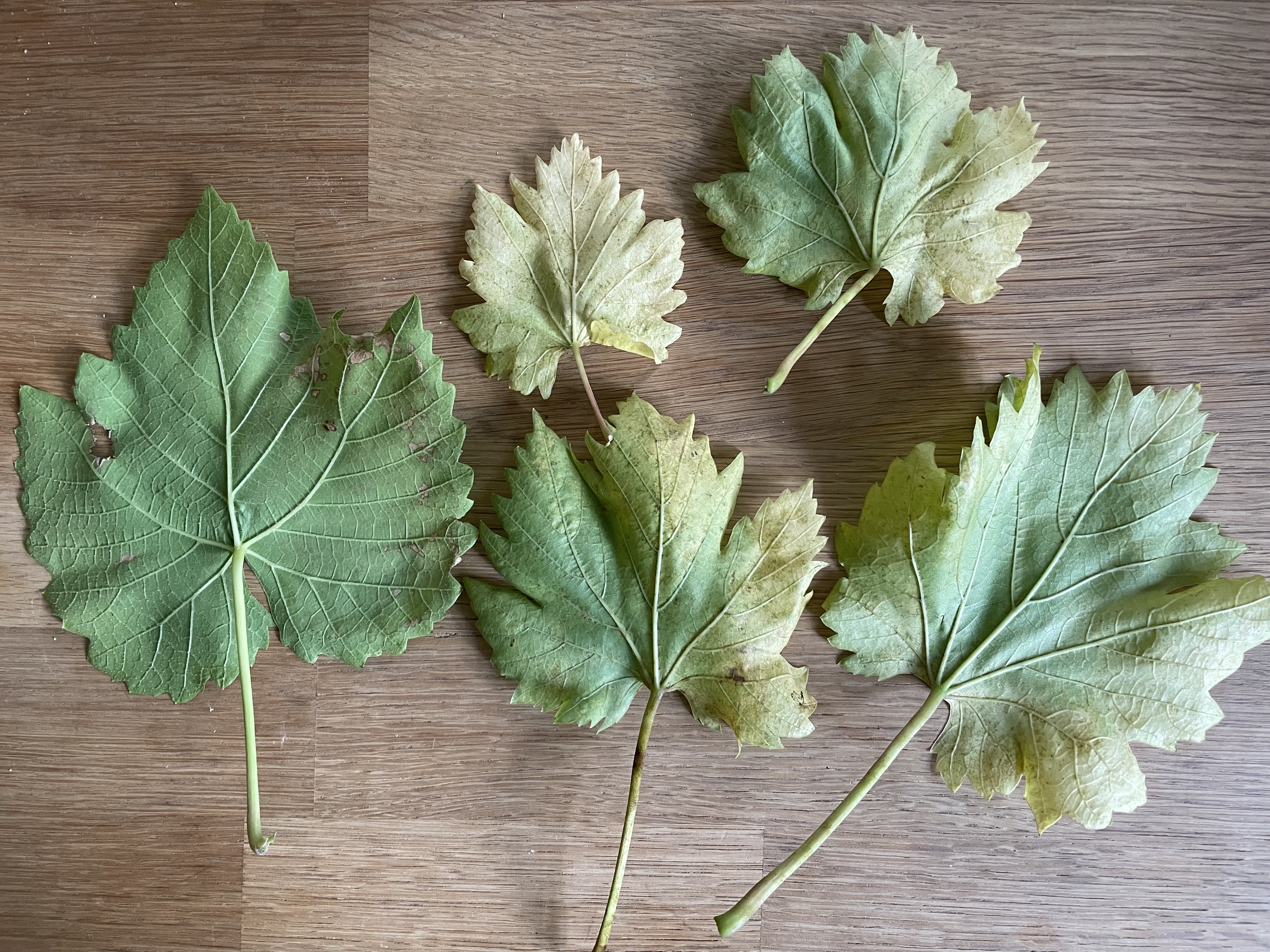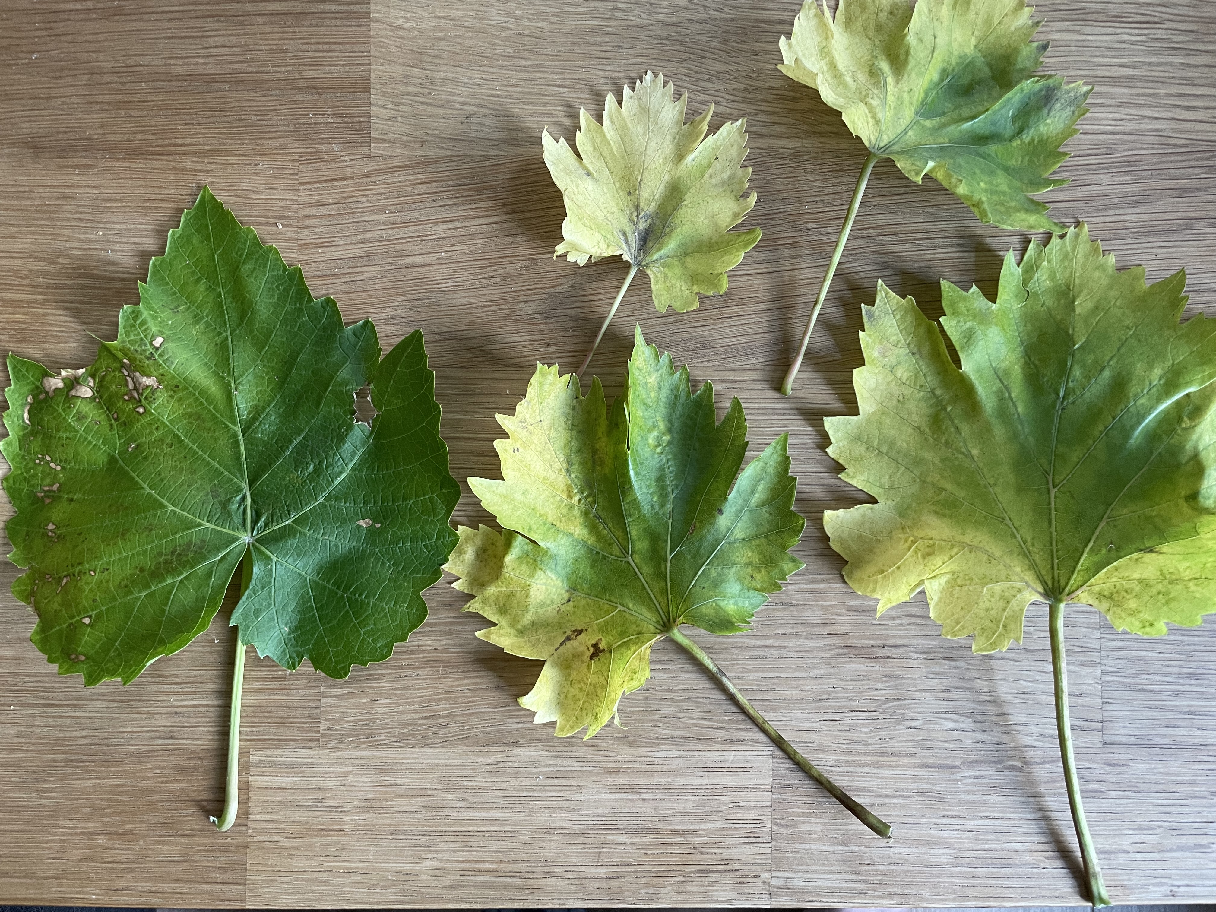 Daneben steht eine Suffolk Red und eine Datteltraube. Mehltau vermute ich auch aber so 100%ig werde ich nicht schlau draus.