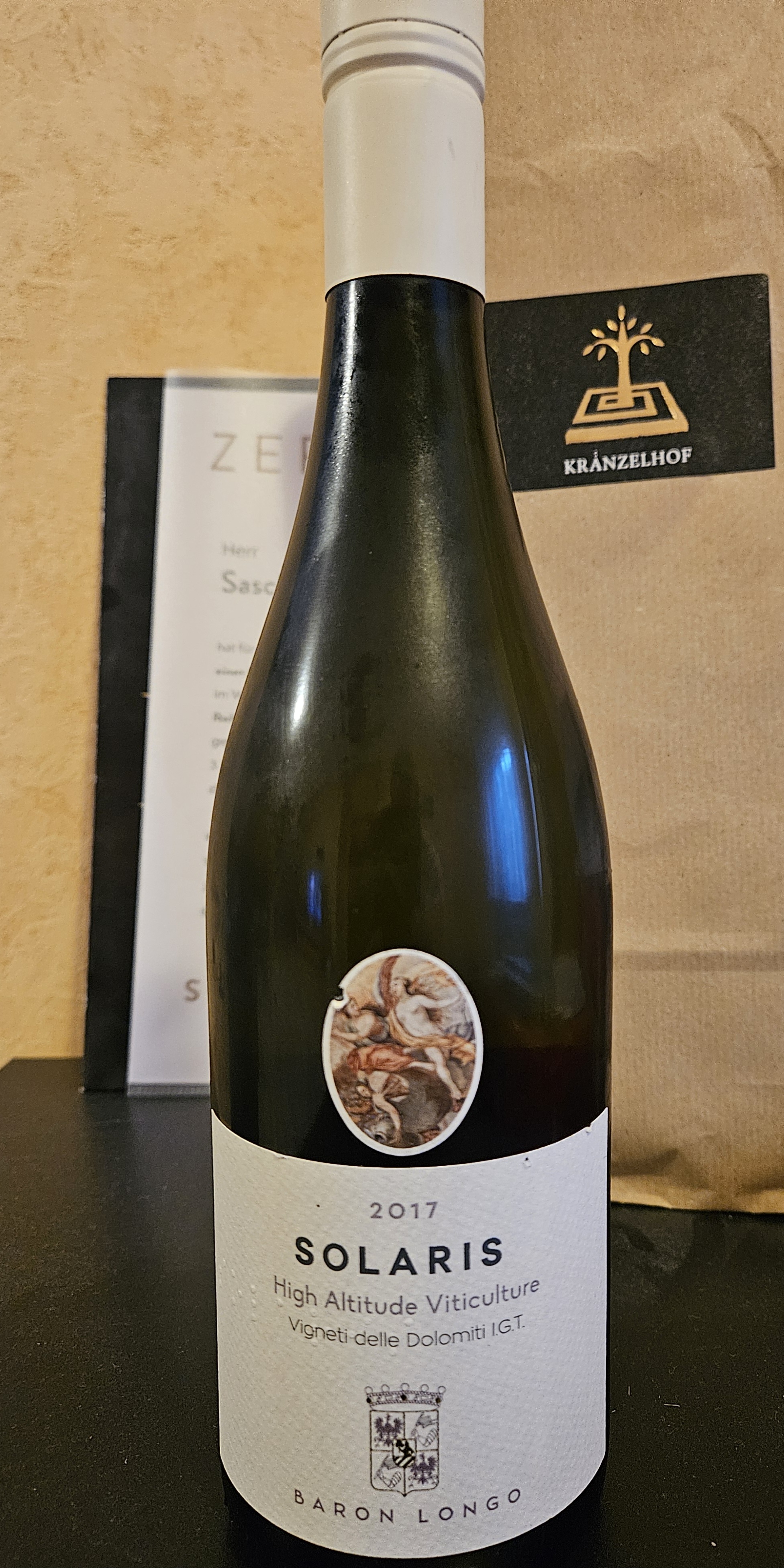 "In der Bar bleibe ich experimentell und trinke einen feinherben Solaris Sichlburg mit 12,5 Vol% aus dem Jahrgang 2018 von Baron Longo in Neumarkt. Die Reben wachsen wohl auf rund 1.000m; die frische Säure und Steinobstaromen erinnern fast an Riesling aus dem mittleren Rheingau. Das ist zum Abschluss ein gelungenes Experiment."