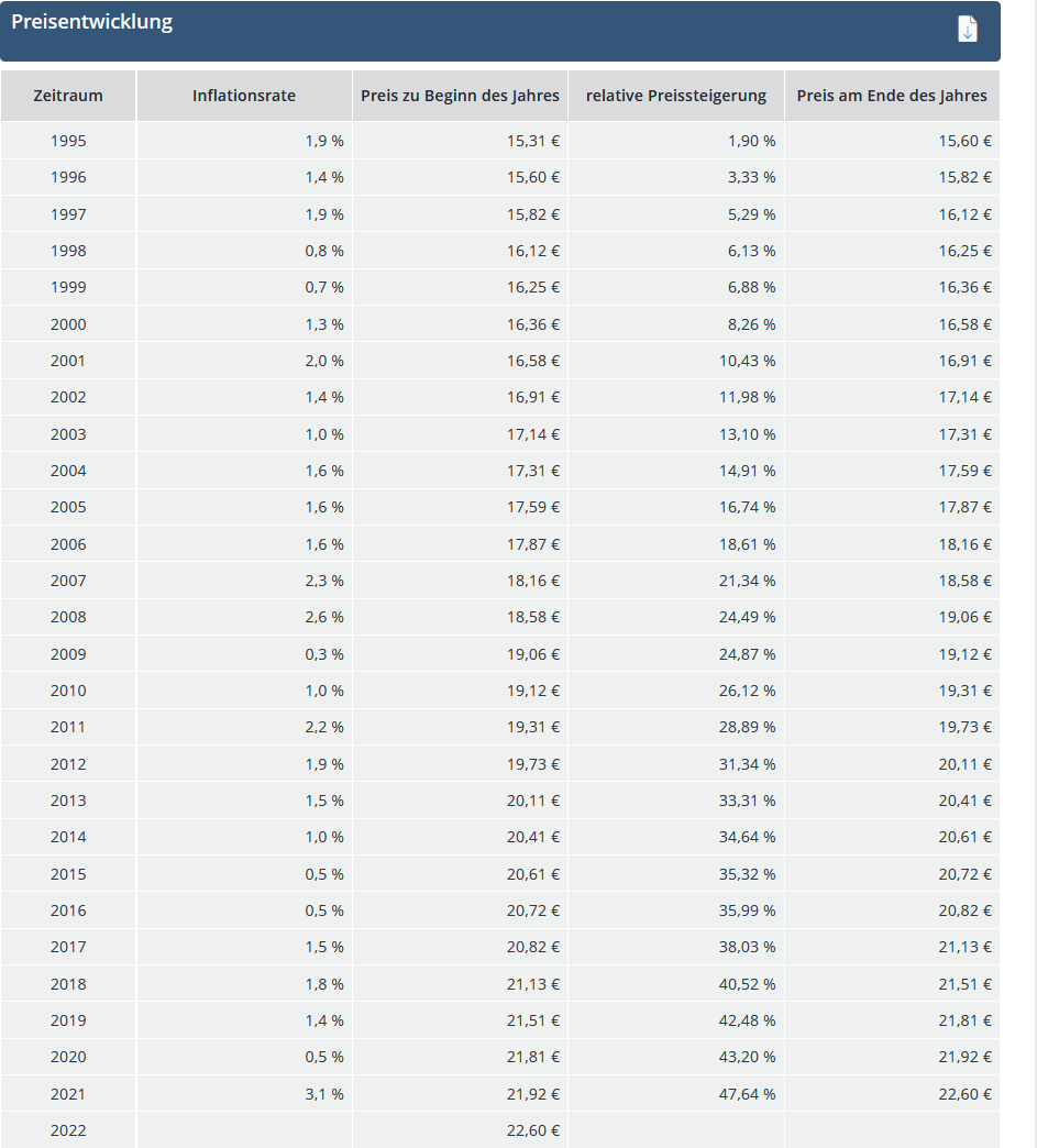Rechnerisch entspricht das einer durchschnittlichen Inflationsrate von ca. 3,9 % pro Jahr.