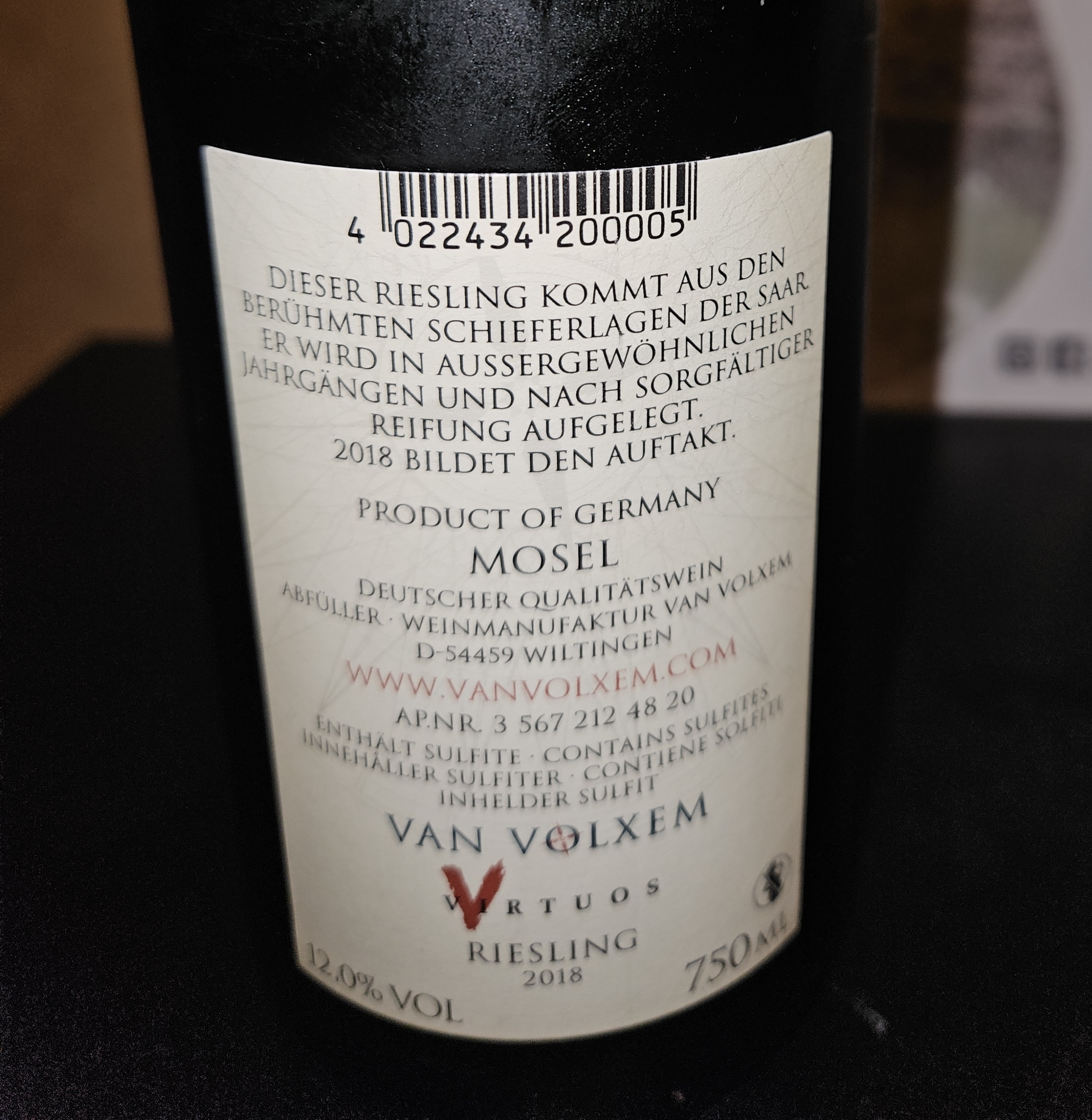 ...die Betriebsnummer der "Weinmanufaktur Van Volxem", welche für die "Zukaufweine" steht, ist mit 567 212 die gleiche wie für das "eigentliche" Weingut, ganz im Gegensatz zu anderen Gütern, die mehr als eine Betriebsnummer haben (wie zuletzt bei Jülg bemerkt). Vielleicht hat's deshalb seine Richtigkeit, die Wahrheit wird im Bereich der Spitzfindigkeiten liegen...