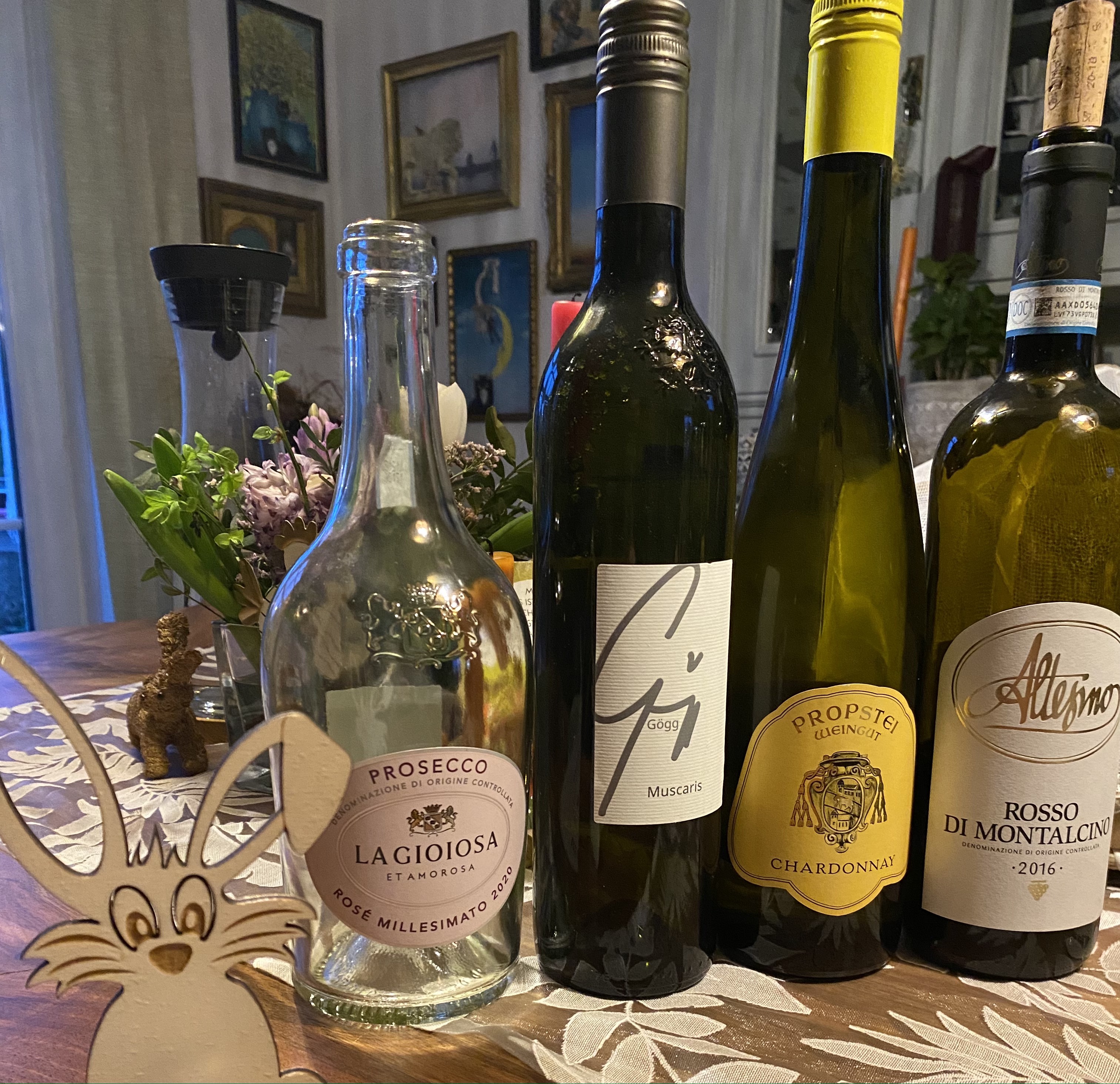 PS: die davor getrunkenen Weine, ein ausgezeichneter La Gioiosa-Prosecco rose, ein äusserst seltener „Muscaris” (nur 50ha Anbauflächen in Ö) vom Weingut Gögg aus der S-Steiermark und der wie ein satter Bentley daher kommende 14,5%-Chardonnay vom Propstei Weingut Krems warenn allesamt wunderbar.