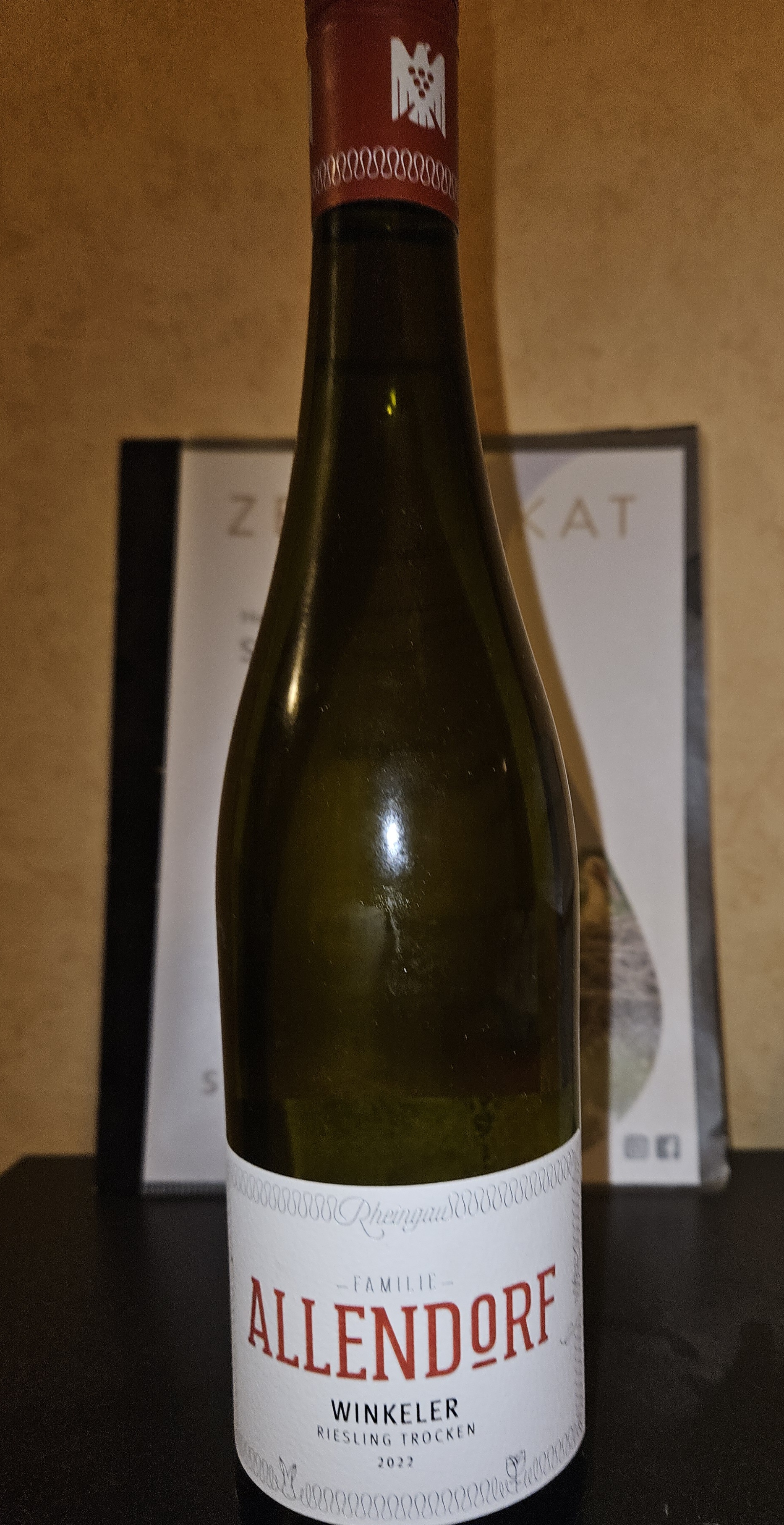 Auf jeden Fall trinke ich jetzt einen 2022er Winkeler Ortsriesling Trocken mit 12,5 Vol%.