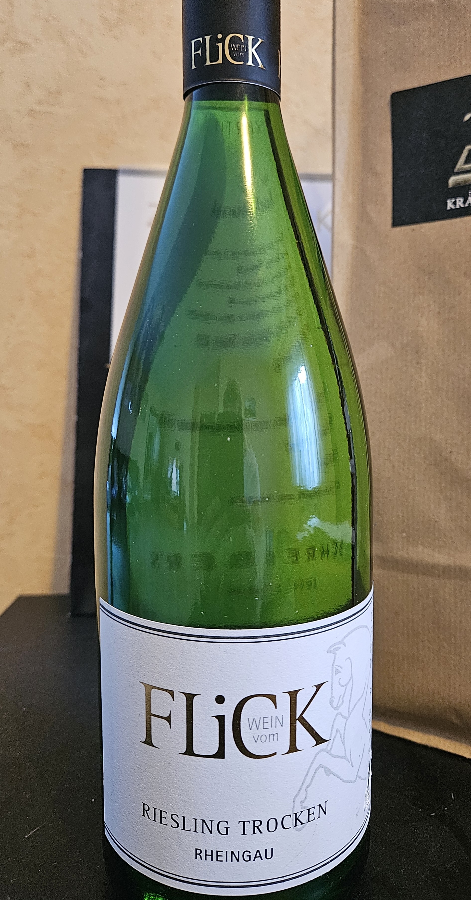 Nach dem Essen zu Hause nun der Basiswein vom Hauswinzer: 2023er Rheingauer Liter-Riesling Trocken von Peter Flick mit schlanken 11,5 Vol% zu ebenso schlanken € 6 die Flasche. So ein "Zech-Riesling" ist für mich Pflicht im Keller und wenn du die Nr. 1 der Weinkarte bedenkenlos trinken kannst, dann kannst du den Rest des Sortiments üblicherweise auch bedenkenlos kaufen.