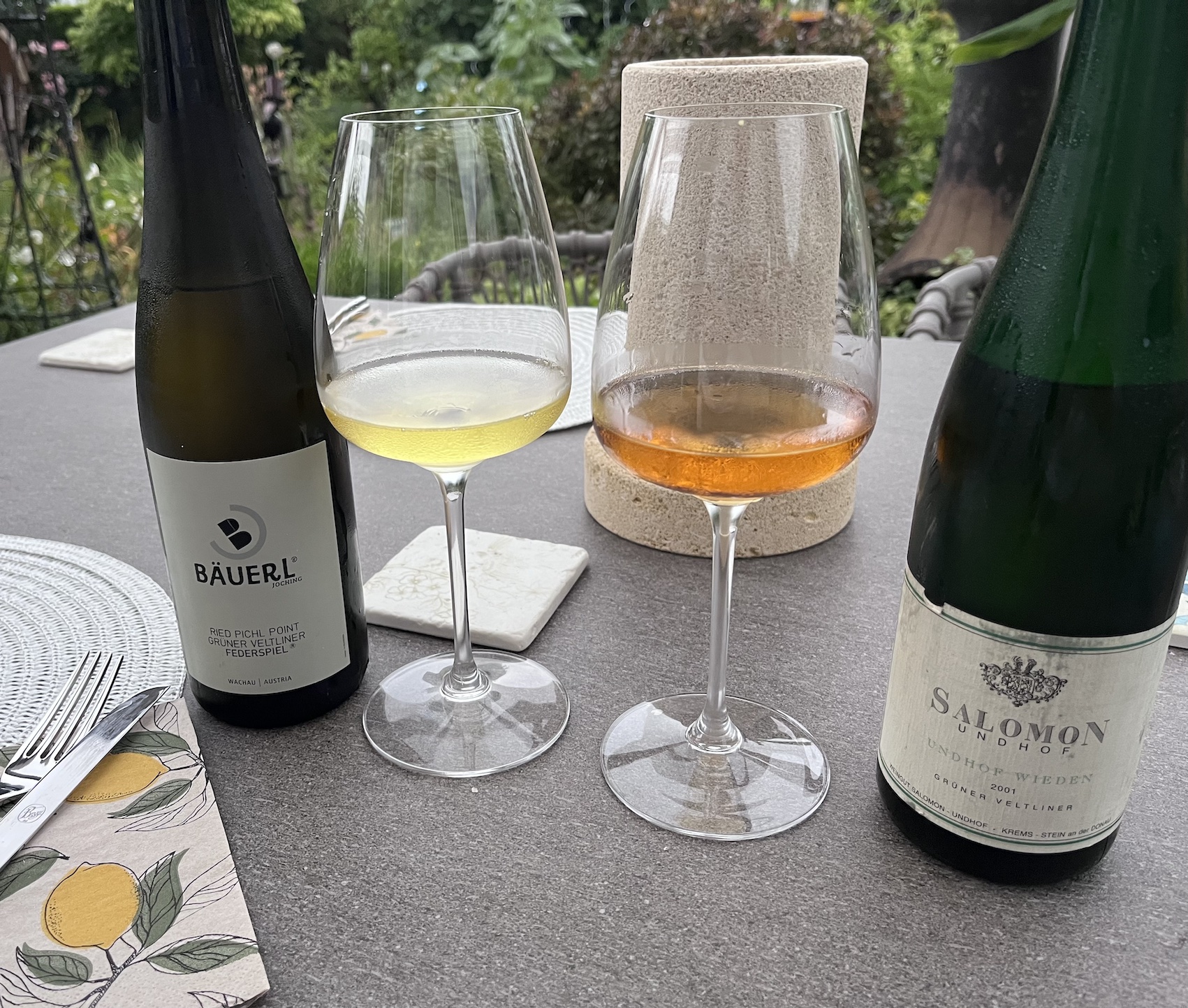 SALOMON Grüner Veltliner von der Steiner Lage „Undhof Wieden“ aus 2001 (!!) und BÄUERL Grüner Veltliner aus der legendären Wachauer Ried „Pichl Point“ aus 2020!