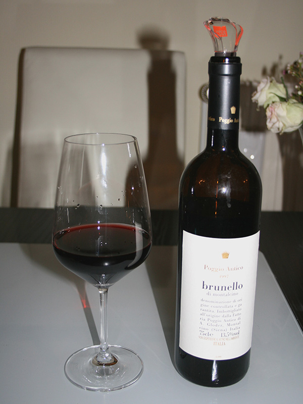 Am Sonntag gab's bei mir ein Hirsch-Waldpilz-Gulasch und dazu einen Poggio Antico Brunello 1997. Der Brunello zeigte sich sehr gut gereift und harmonierte vor allem mit seinen kräutrigen Noten ganz gut zum Essen, wobei ich einem kräftigen, würzigen Medoc doch eher den Vorrang als optimalen Begleiter geben würde. Naja... jedenfalls hatte ich diesen gereiften Brunello dieser hervorragenden Tenuta kürzlich in die Hände bekommen und war gespannt drauf, weshalb er nun dran glauben mußte.