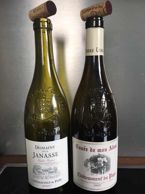 2 Flaschen und eine Frage: Wann sind es 100 Punkte??? 2 Flaschen, die sich nicht dramatisch unterscheiden und beide auf Ihre Art perfekt sind!! Es wird viel über den Jahrgang geschrieben was nachdenklich macht, und auch ich hatte schon div. Flaschen die mich haben verzweifeln lassen. Aber hier kann man 2 mal weder durch hinzufügen noch durch wegnehmen etwas verbessern. 2 perfekte Interpretationen von Chateauneuf du Pape. Der Usseglio reinsortig und der Janasse eine klassische Cuvee mit 85% Grenache. Keiner der Weine war fett, marmeladig oder portig (ich bin da sonst auch sehr empfindlich!!). Jeweils in perfekter Balance, mit unerwartetem Trinkfluss, beide fast schwebend!!! Alles ist da Frucht, Würze, erste zarte Reifenoten. Eine tolle Eleganz. Der Janasse anfänglich mehr auf die Frucht bauend, der Usseglio eher der kräuterwürzige eukalyptusfrische Typ, später sich annähernd. Beide Weine jetzt mit Luft ganz toll zu trinken, aber auch noch mit viel Zukunft! Besser werden sie wohl nicht mehr, nur anders!! Hier war auch kein Wein besser als der andere, nur anders! Breathtaking!!! 98-100 P