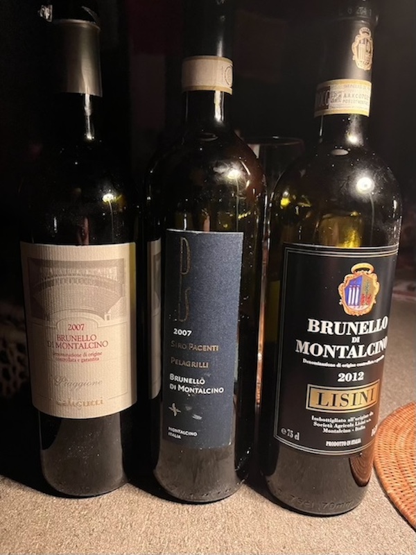 Unser Brunello-Reigen neigt sich dem Ende zu, so wie laaaangsam der Sommer auch, ich gehe ab Mittwoch auf lange Tourneen, und so genossen wir den Samstag zu viert noch mit Freunden in unserem Garten und nach 2 Traum Proseccos von Col Vetoraz, einem wunderbaren GV Federspiel „Poigen” 2019 vom Martin Bergkirchner und einem wuchtigen Pinot Blanc Reserve 2021 vom Daniel Plos (Sooß) kamen die Brunellos.