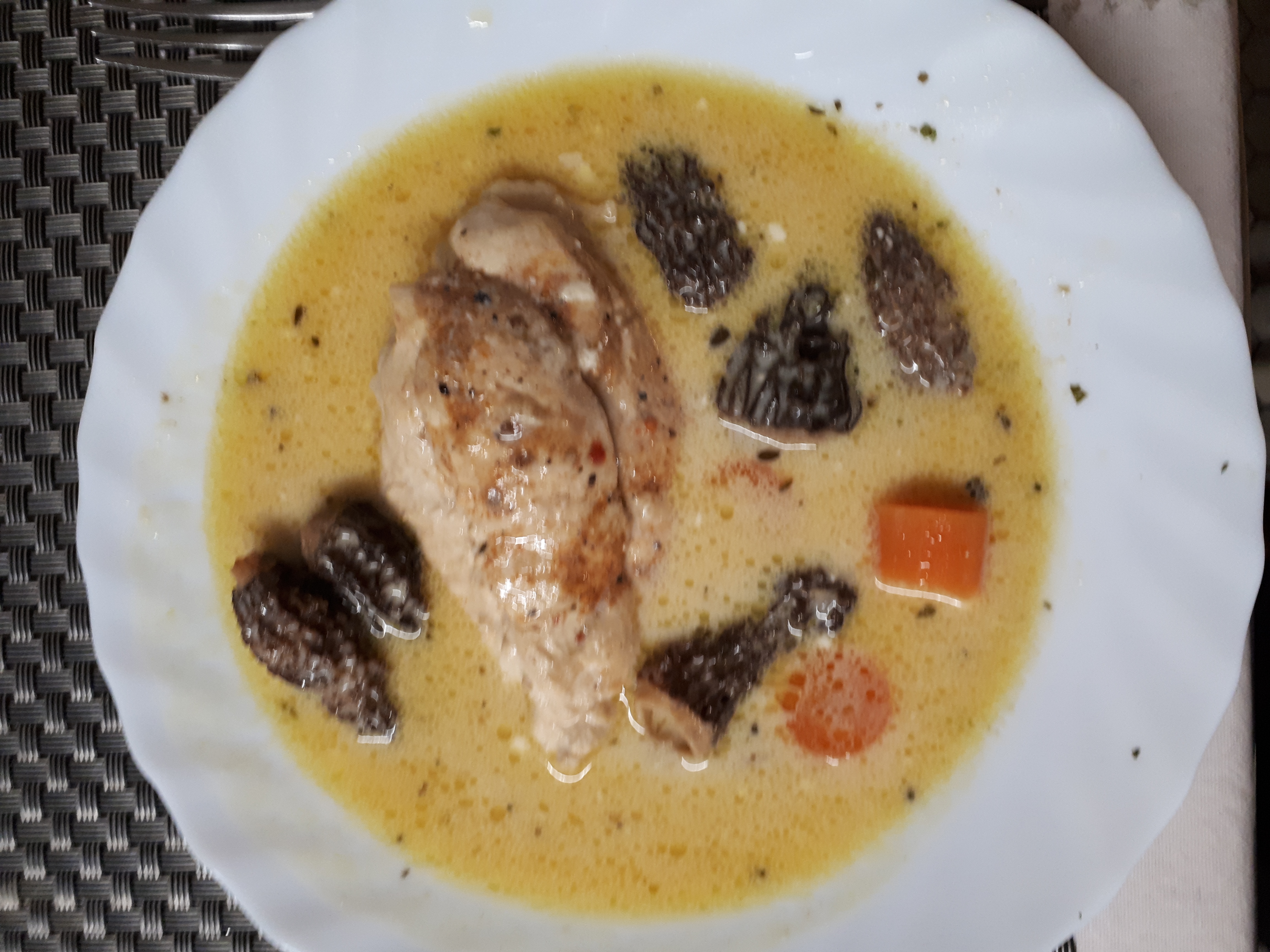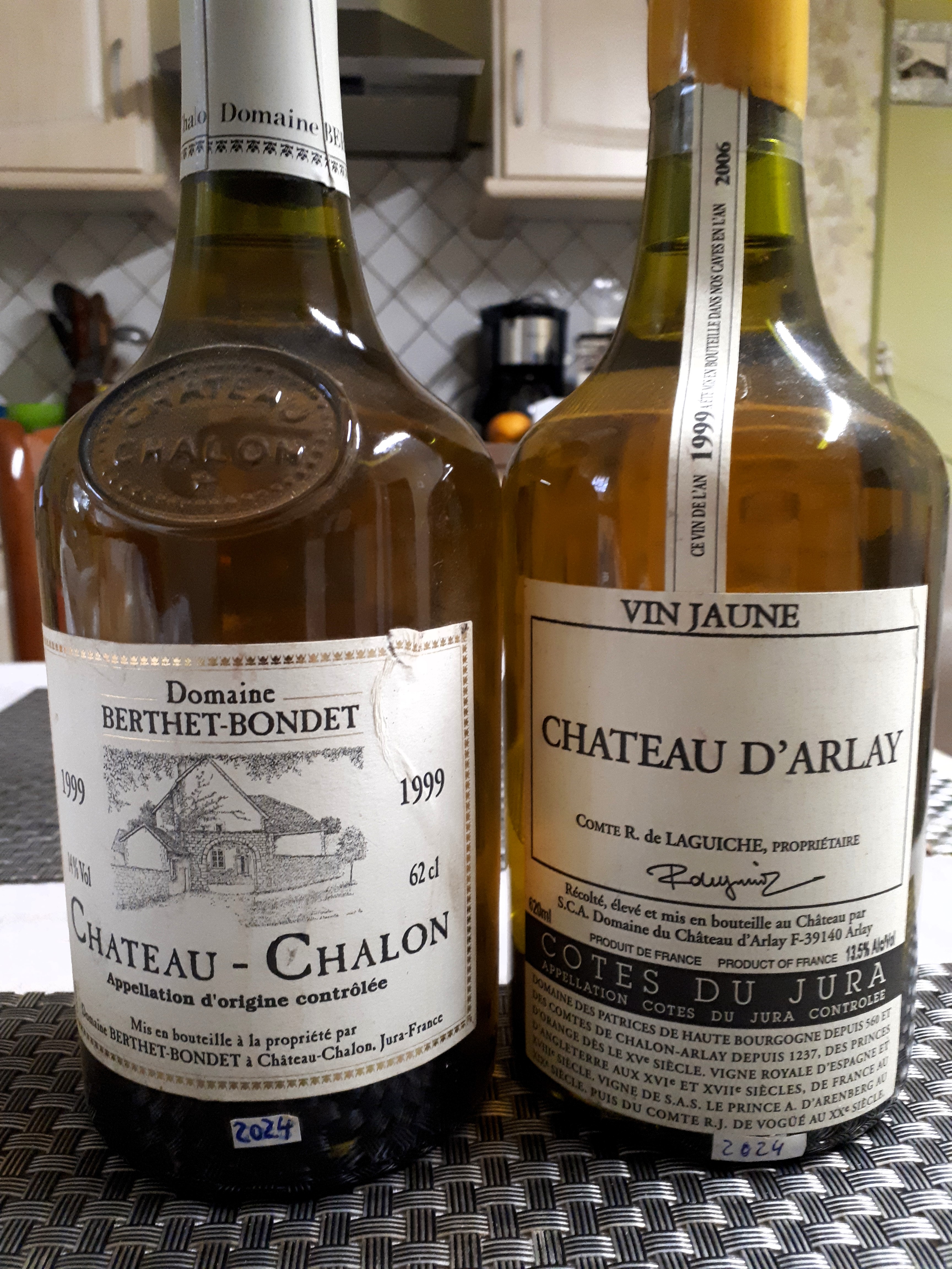 In unserem Fall hatte ich jetzt den 1999er Vin Jaune vom Château d´ Arlay mitgenommen (ich hätte auch den 1999er Château Chalon von Berthet Bondet öffnen können, der stand ebenfalls zu Auswahl...) - ein Klassiker und inzwischen mit wirklich großem Spaß zu trinken gewesen (am 2. Tag noch besser als am ersten, auch einem Wein aus dem letzten Jahrtausend sollte man noch gut Luft gönnen, damit er all seine Komplexität zeigen kann. Ich habe nicht ernsthaft was notiert und bewertet, aber aus dem Bauch heraus waren das schon 97-98/100 Th. Wer davon hat, darf sich freuen, natürlich am Besten zum Maishähnchen in Vin Jaune und mit Morcheln - Kassiker für den Klassiker halt und wer dafür noch ein AOP-Bresse-Huhn auftreiben kann, der landet im Genussparadies.