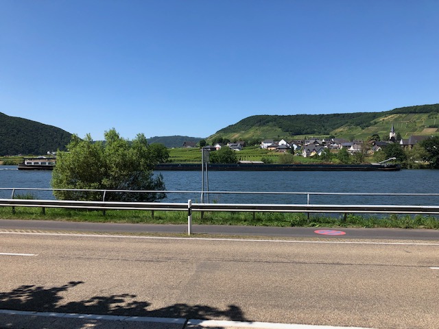 100 Meter lange Schiffe auf dem kleinen Fluss Mosel - besser nicht am Steuerrad einschlafen und das Schiff querstellen!