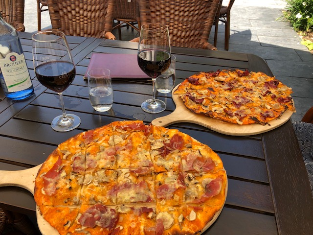 Mittagessen im Kloster Marienthal, sehr leckere Flammkuchen!