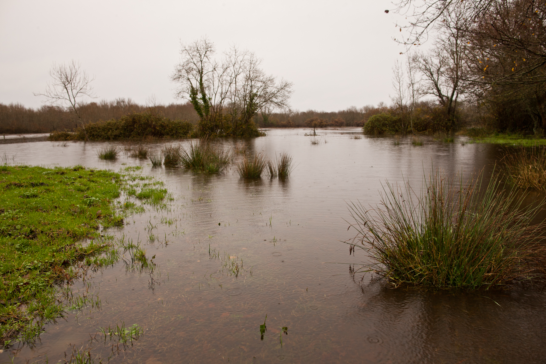 Unsere Marais/Feuchtwiesen laufen nun regelmäßig voll und voller. Weil sich das Licht auf der Wasserfläche spiegelt wird diese Flutung hier 'Marais blanc' genannt. Für mich ein neuer Rekord zu sehen wie hoch wie das Wasser dort heute steht. Die nächsten Tage soll der Regen nachlassen; das wurde und jedoch auch schon häufiger versprochen.