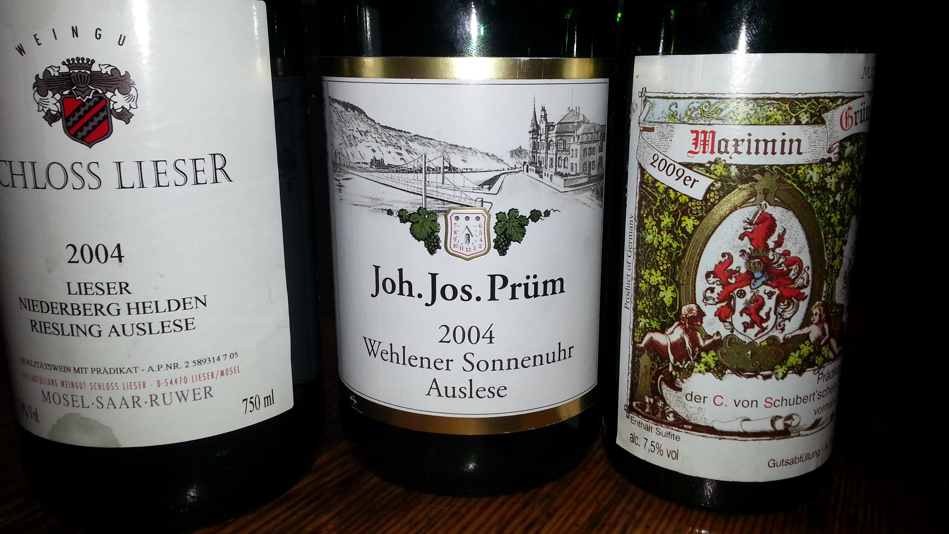 Die restsüßen 07er von Schloss Lieser sind vermutlich auch noch klar zu jung. Die 05er, die ich von Lieser habe (07er fehlen leider bis auf eine Einzelflasche, die ich aber auch noch länger unangetastet lassen werde, in meinem Keller) fangen so ganz langsam an, eine erste Trinkreife zu erreichen.Lieser hab ich einige div. Süsse aus 2007. Da ich sicher gehen möchte, dass der Spontistinker weg ist, habe ich bisher aber noch nichts angerührt.