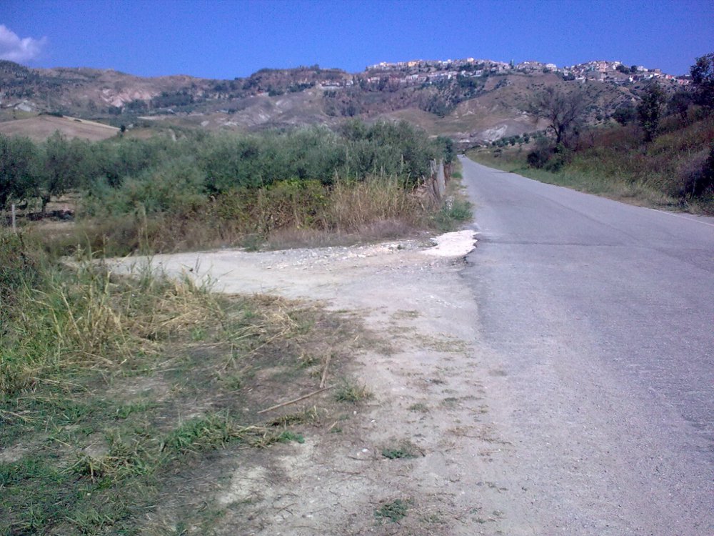 Blick vom Hinterland auf Cirò (also die "Rückseite"); im Vordergrund Reben im Unterstand eines Olivenhains.