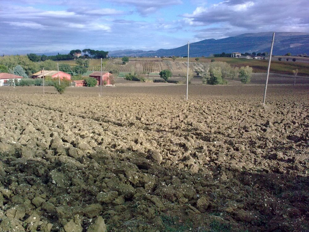 Ackerland, Oliven- und Weinkulturen in Arquata mit Gebäuden von Adanti