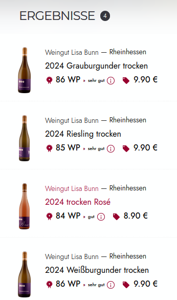 Lisa Bunn hat bereits diverse Gutsweine des Jahrgangs 2024 in den Verkauf gebracht. Ohne die Weine zu kennen ist es zumindest positiv, dass die Preise gegenüber dem Jahrgang 2023 nicht gestiegen sind.