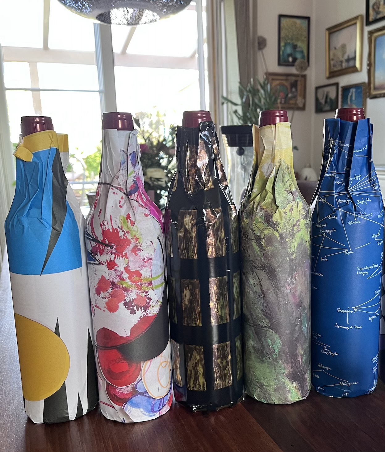 Die Künstleretiketten sind schon besonders. Von der 2005er Ausgabe "Imagine" - Grafik gestaltet von Yoko Ono, als 6-tlg. Serie, jeweils Einschlagpapier und Etikett in 6 mal Farbmonochromie. Einfach.Nur.Schön.