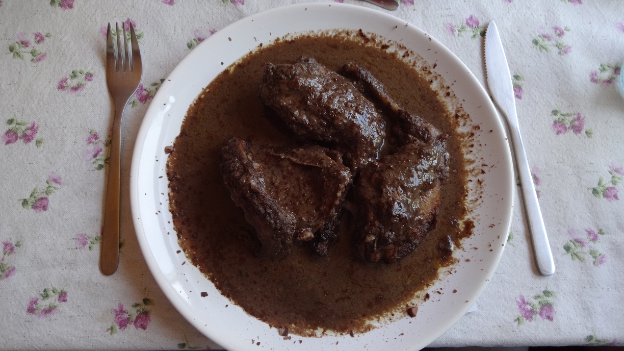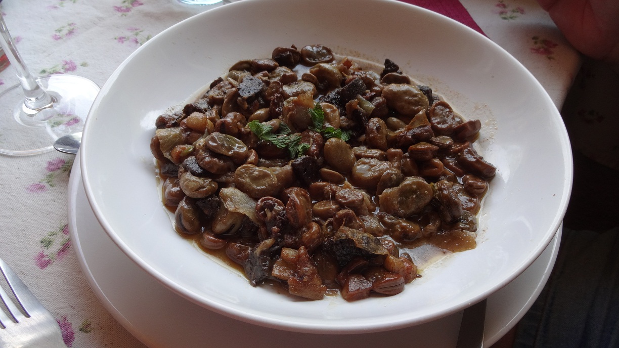 dort schlemmten wir nun so richtig und genossen lupenreine prioratküche. wir hatten mehrere gänge, für torsten unter anderem ein bohnengericht (erstes foto), für frank eine entenbrust (zweites foto), und ich konnte nicht widerstehen und bestellte das, worauf ich schon vor unserer reise grosse lust hatte, fleisch in schokolade als typisches prioratgericht. es war ein zartes kaninchen, das sich sichtlich wohl im schokomantel fühlte. dazu harmonierte ein roter prioratwein nahezu perfekt - die deftigen fleischnoten und schokoaromen aus dem gericht - und die vibrierende und feine mineralik und die vollen fruchtaromen aus dem wein.