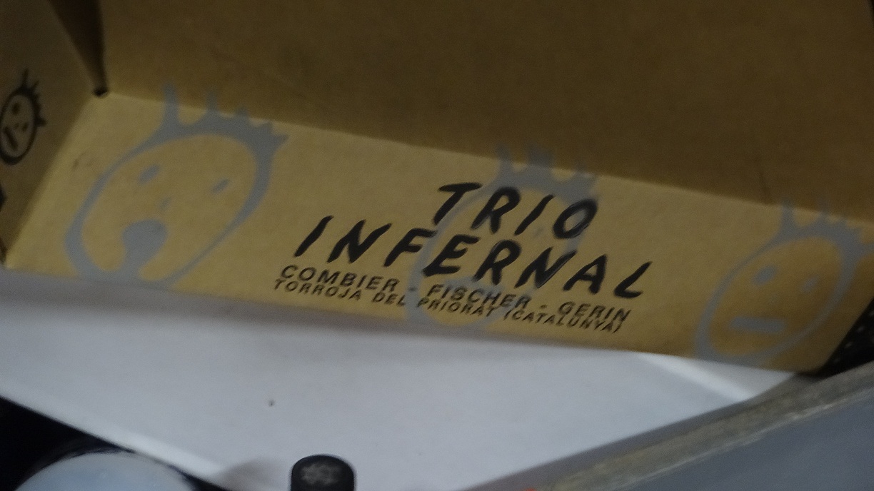 die fassverkostung hat viel spass gemacht. er konnte uns direkt die entsprechenden weinhänge und parzellen draussen zeigen, aus denen die trauben in den fässern stammen. der weinberg trio infernale liegt ja genau gegenüber von torroja und wir konnten ihn die ganze woche schon bewundern. das weingut liegt genau am fuss des weinbergs. frank hatte den weinberg auch schon beim morgentlichen jogging erkundet (respekt!).