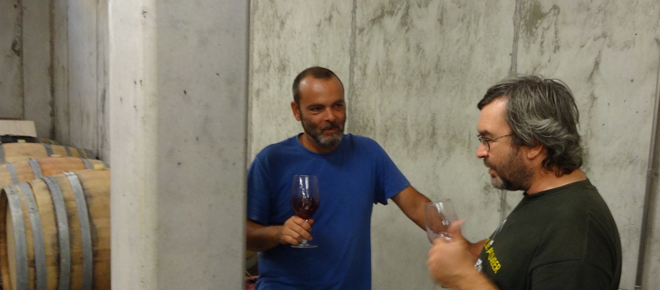 das projekt liegt in torroja selbst und so konnten wir zu fuss zum weingut gehen. wir traften dort christian breton, der sozusagen vor ort die geschäfte führt aber auch selbst auch einen eigenen, unabgängigen wein herstellt.