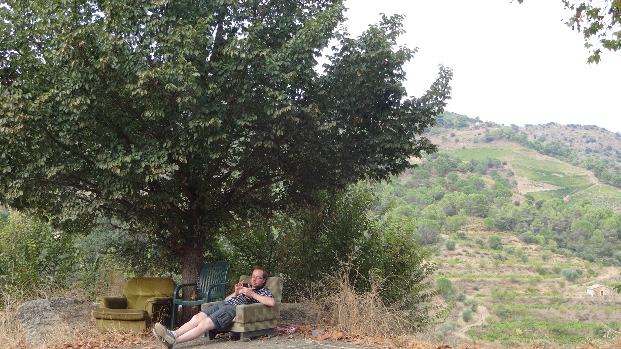 damit hatten wir also unser prioratweinprogramm fertig - frank chillte noch etwas in den sesseln an der strasse unterhalb des trio infernale weinbergs...."hanging loose in the priorat".
