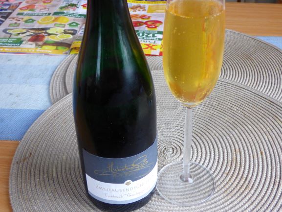 15 Euro kostet dieser etwas andere Riesling-Sekt brut ab Weingut. Einsetzbar ist er sicher auch als Aperitiv, kann aber auch als Begleiter zu geräuchertem oder luftgetrocknetem Fleisch (z.B. Schinken) gute Dienste leisten. Denn dieser Sekt kann mehr, gerade weil er neben allen feinen auch kräftige Noten hat.